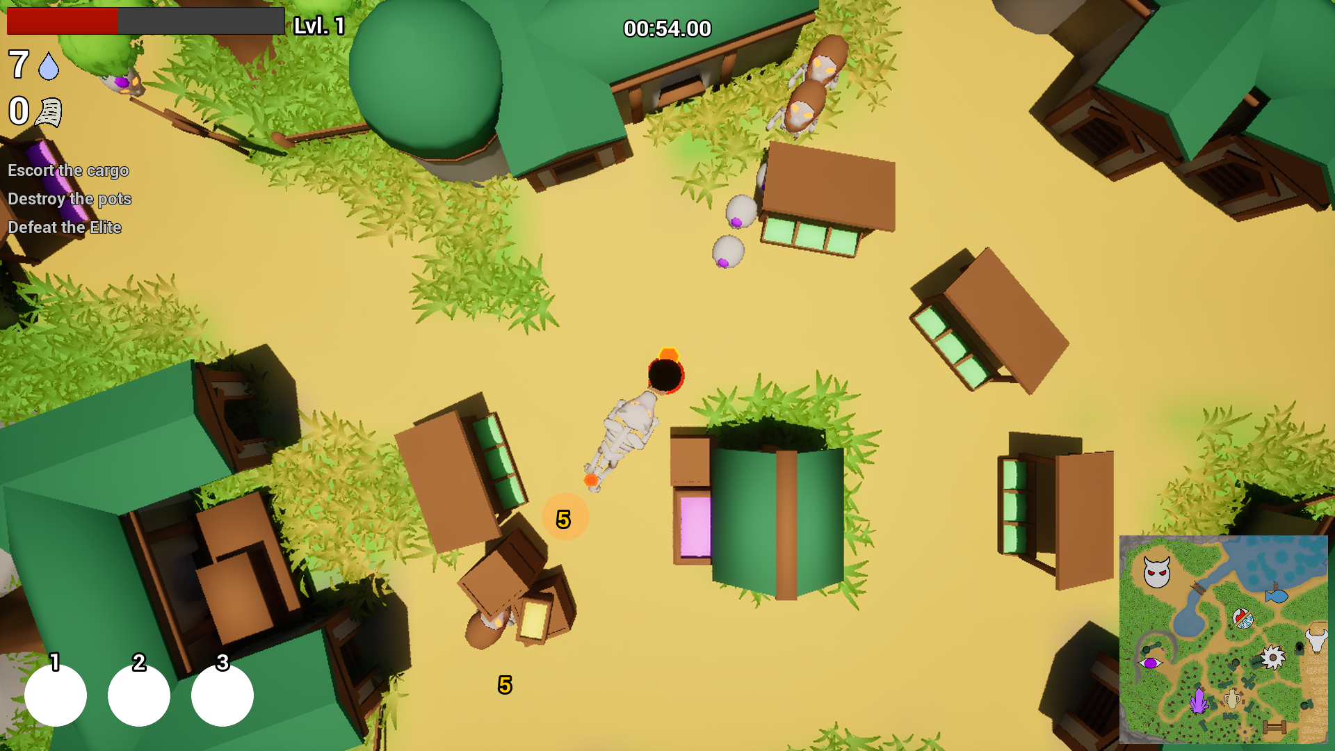 Move arround while dodging the enemies and complete Quests in order to Upgrade your spell. You can buy and use consumables if you need them ;)